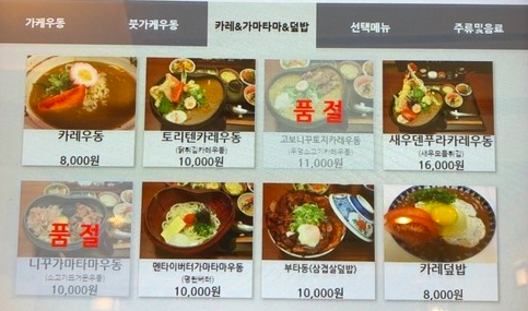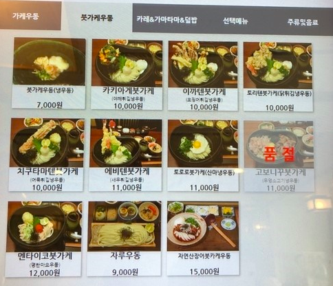 부타동, 니꾸우동, 덴뿌라(튀김)