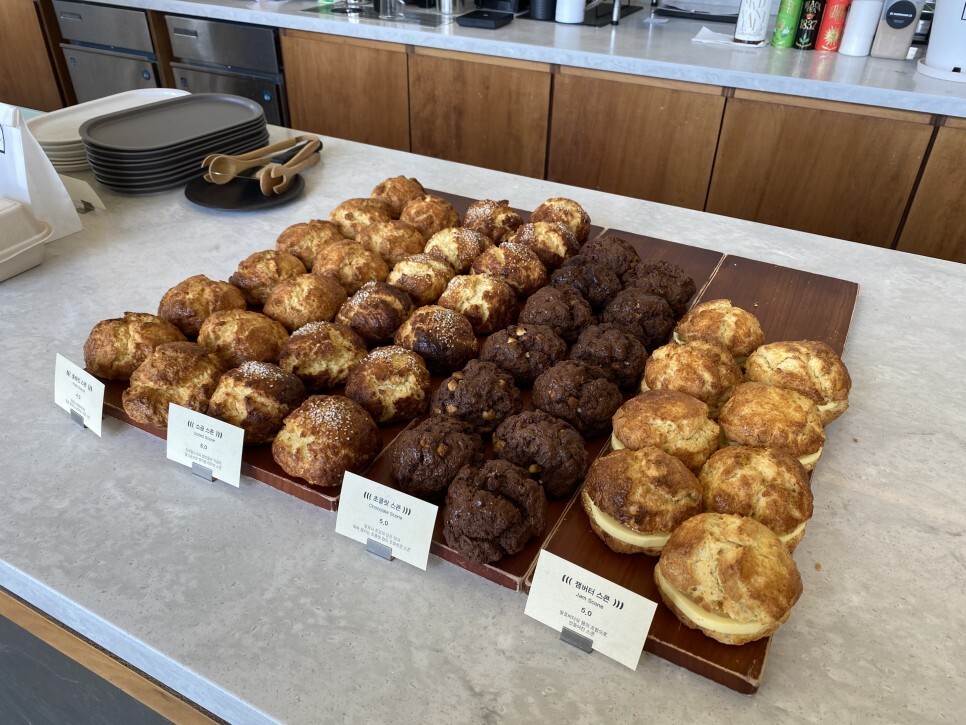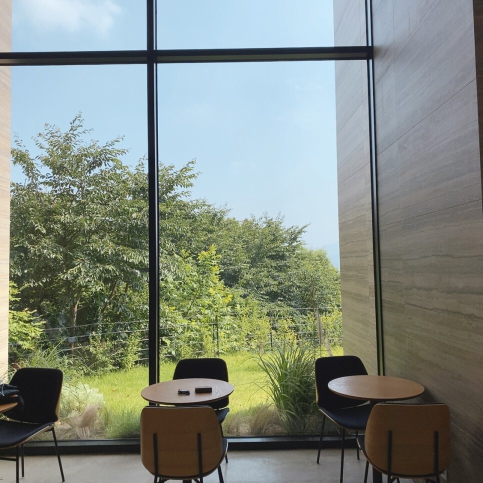 커피와 스콘, 마들렌을 주문하고 앉을만한 자리를 찾아봅니다. 창가를 바라보고 앉는 자리는 이미 만석이네요. 한쪽 면에 유리창을 설치해서 바깥 풍경을 감상할 수 있도록 되어 있습니다.