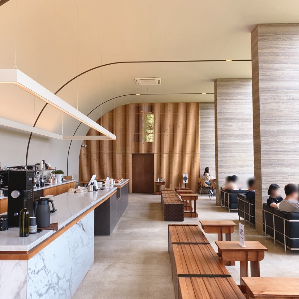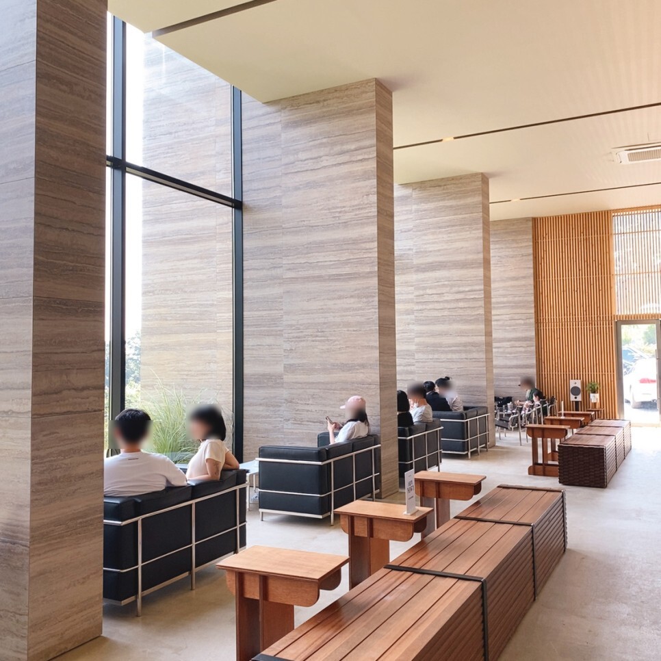 카페에 들어서니 높은 층고와 고급스러운 석자재들, 그리고 은은한 조명과 나무 인테리어가 보입니다. 하필 사람들이 많을 때 찍어서 모자이크 할 부분이 많이 있네요.