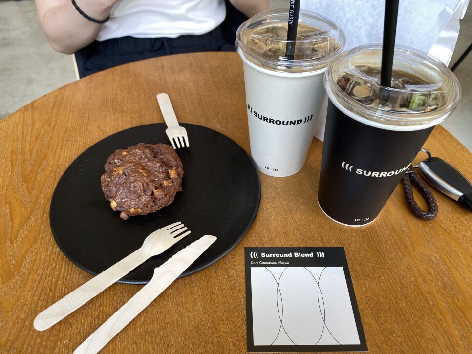 안으로 돌아오니 역시나 인테리어가 예쁩니다. 천장에서 벽면으로 떨어지는 인테리어가 곡선이 아니고 평범한 직각이었으면 그다지 써라운드라는 카페가 특별하게 느껴지지 않았을 것 같아요. 저 인테리어는 정말 신의 한수같습니다.