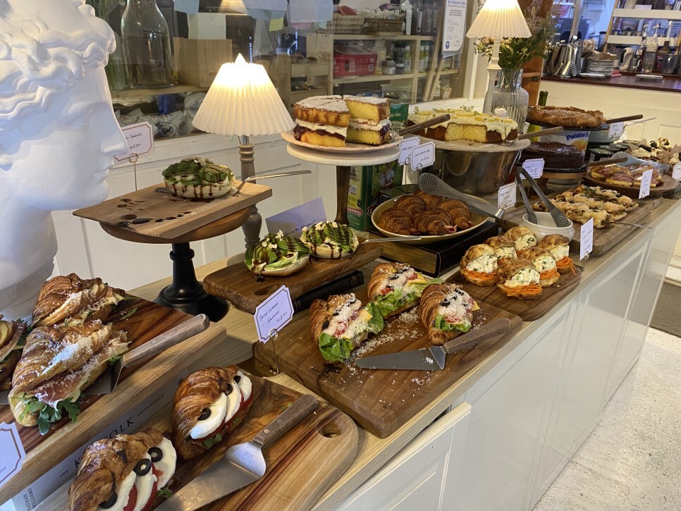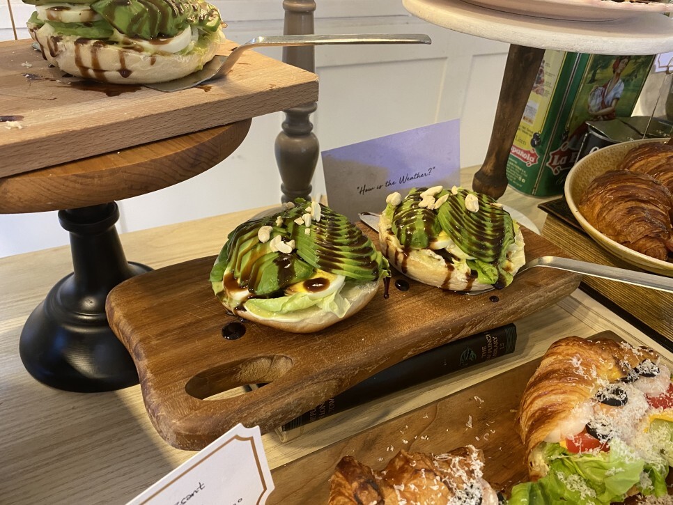 메뉴판에 있는 음식들은 12시 넘어서부터 주문을 할 수 있다고 하네요. 그래서 먼저 진열되어 있던 크루아상 샌드위치와 커피를 마셨습니다. 기대 이상으로 정말 맛있었어요. 안에 하몽과 사과슬라이스 치즈와 루꼴라가 들어있고 뭔가 소스가 발려있는데 진짜 찐짜 맛있었습니다.