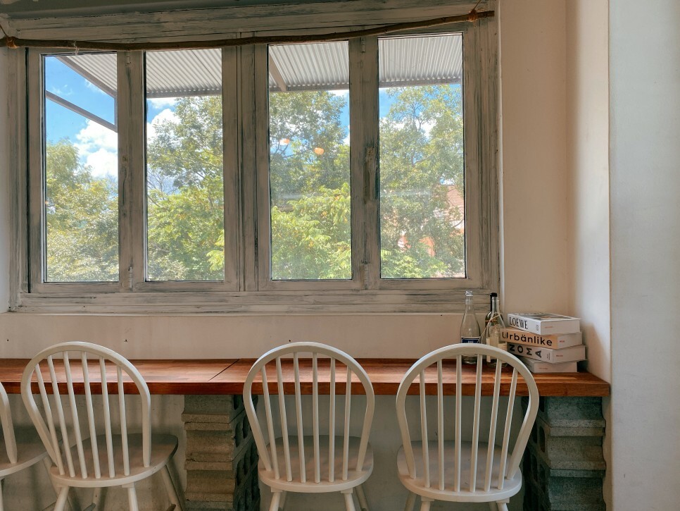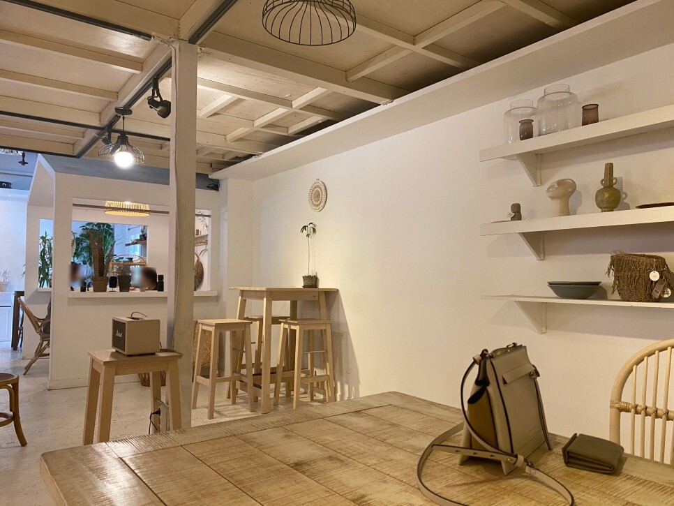 창고를 개조해서 만든 느낌인데 지저분하다는 느낌은 전혀 들지 않았습니다. 그리고 사진에서 볼 수 있듯이 좌석마다 테이블과 의자가 다 달라요. 어떤 곳은 티테이블처럼 낮은 곳도 있구요, 어떤곳은 식탁같기도 하고, 어떤곳은 천장에 줄이 매달려있네요.
