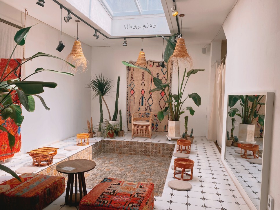 여기는 약간 중동 느낌으로 꾸며놓은 공간이네요. 처음 보고는 이탈리아 귀족들이 빗물을 받아 목욕을 할 때 사용하던 공간처럼 보이긴 했는데, 저 위에 아랍어가 쓰여있고 선인장들과 패브릭 문양들이 중동 느낌을 나게 하는 것 같습니다.