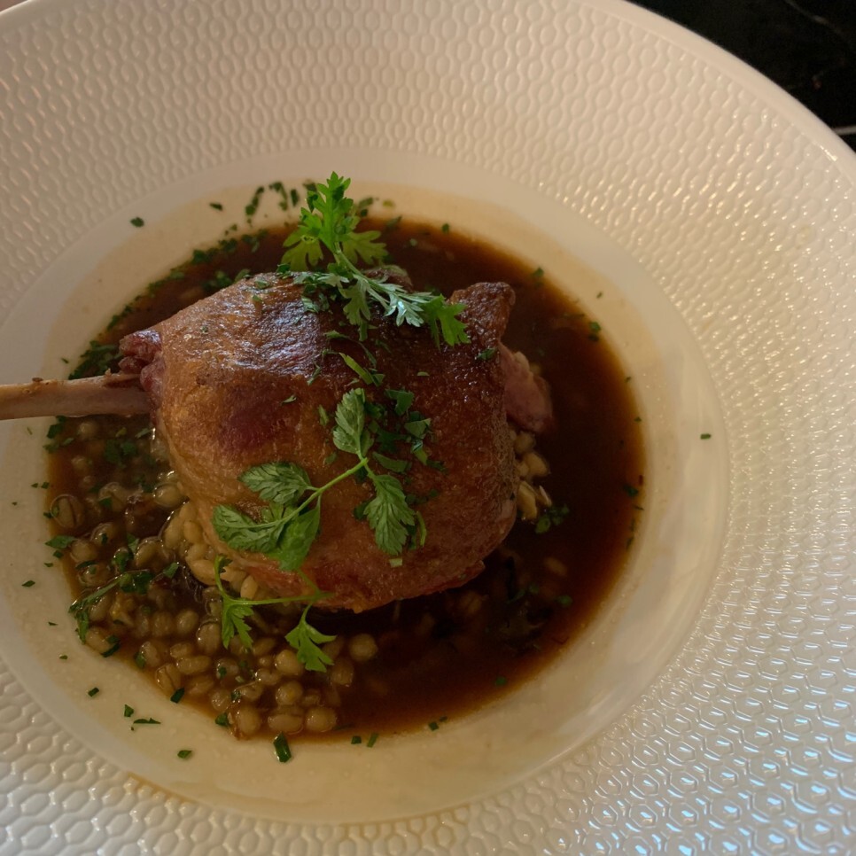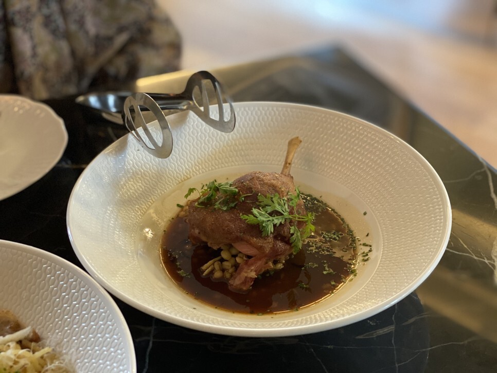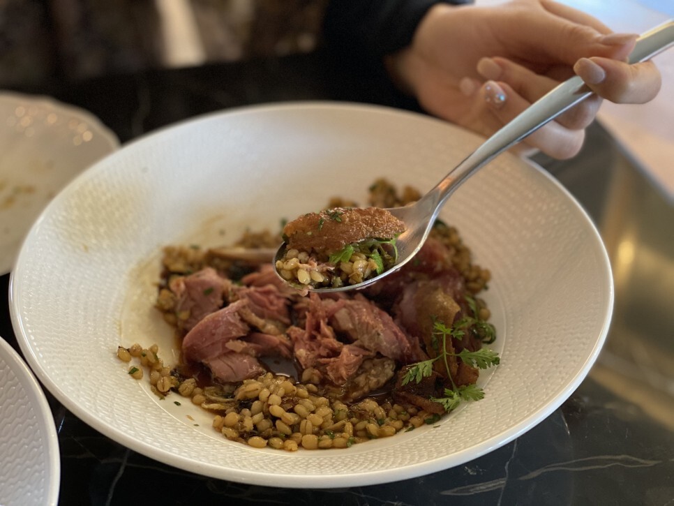 보리와 구운 양배추와 함께 먹는 요리입니다.