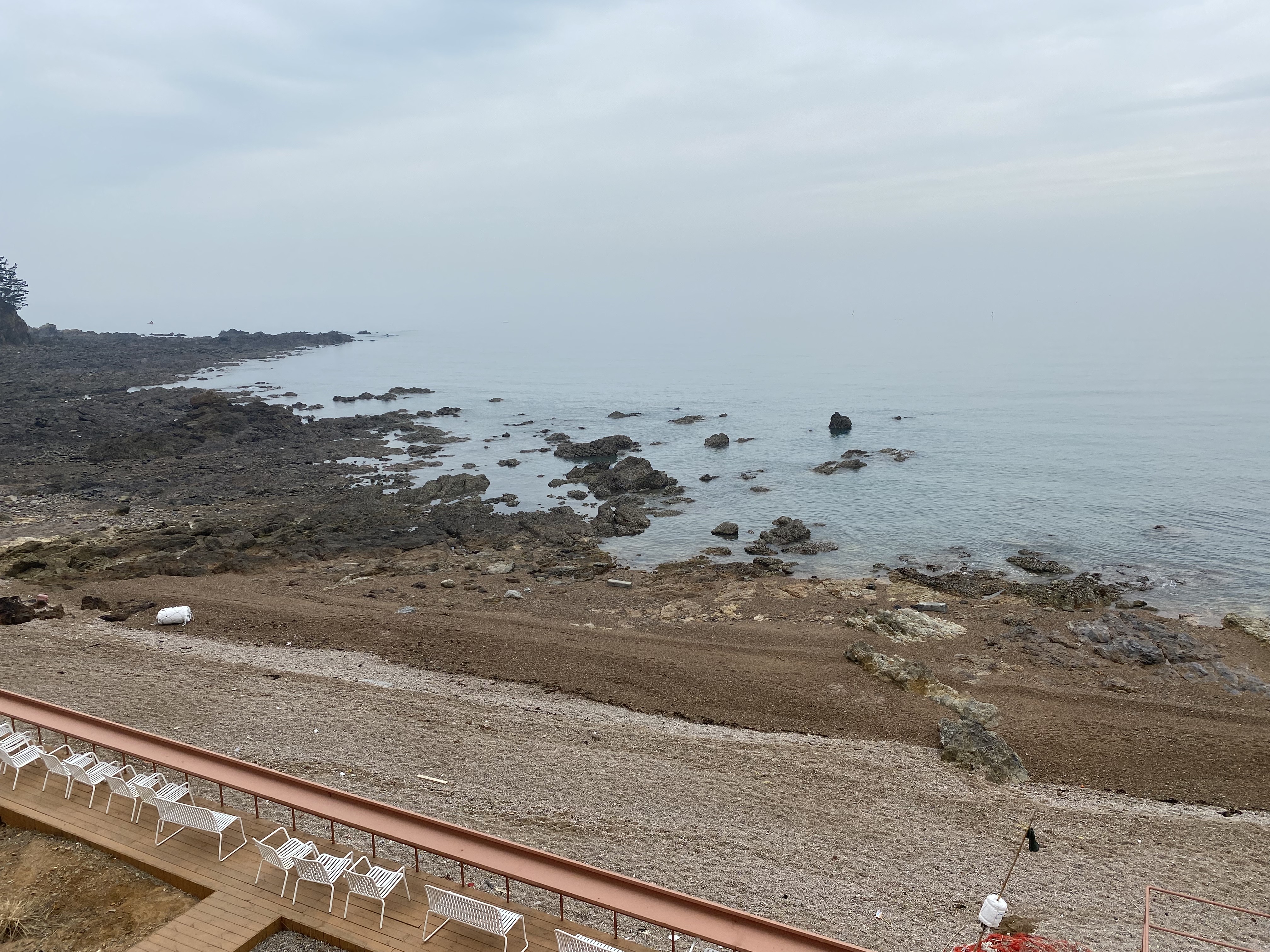 유리통 안에서 문을 열고 나오면 바로 이렇게 루프탑입니다. 파도리해변이 한 눈에 보이는데 좋긴 좋더라구요. 날씨까지 맑았으면 최고였을텐데! 3월 말에 캠핑으로 다시 올 예정이니 그 땐 부디 날씨가 화창하길 바래봅니다.