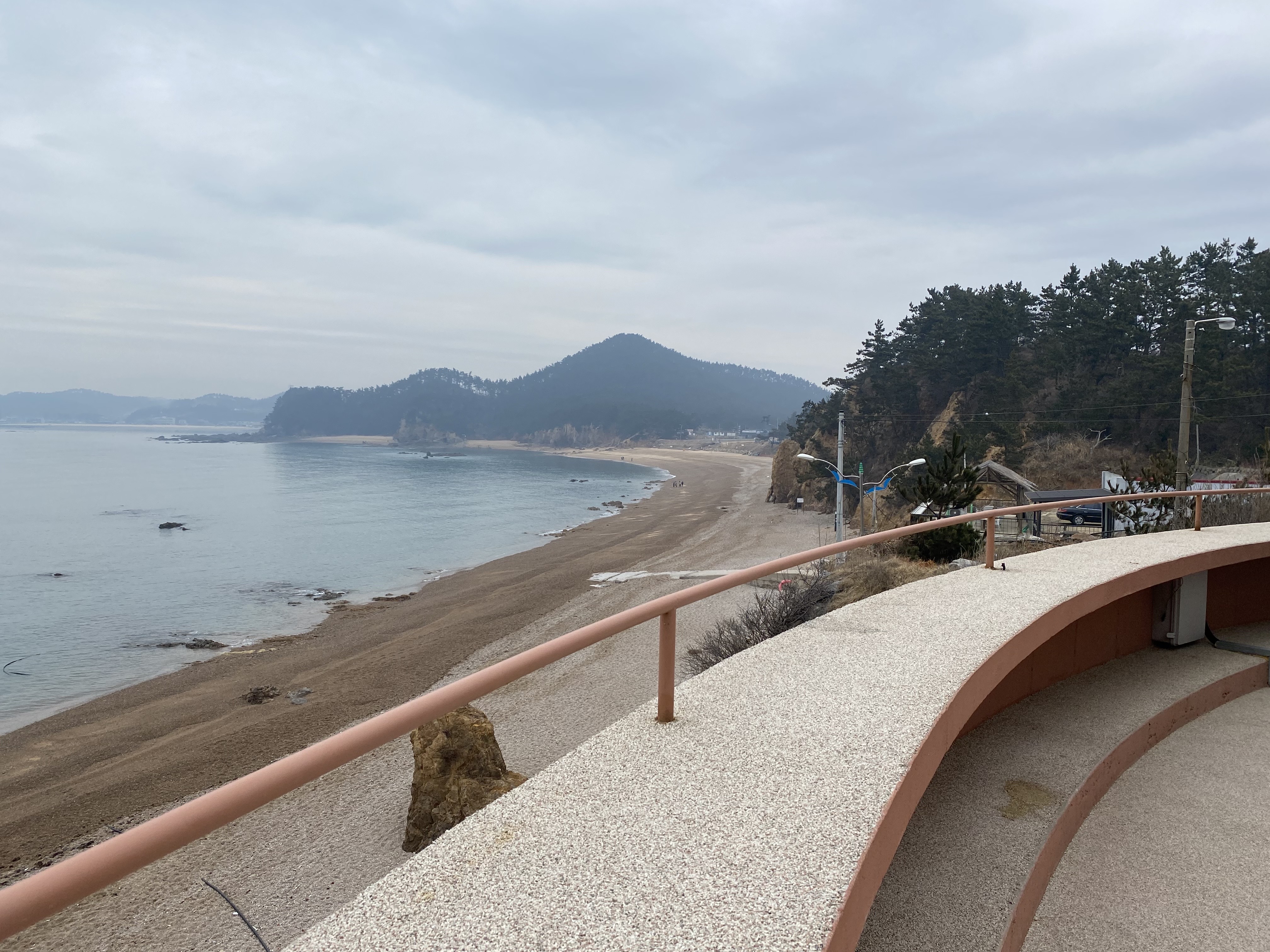 저 아래 해변이 전부 몽돌로 되어 있고 날이 추운데도 길을 따라 걷는 사람들이 많았습니다. 저희 부부도 커피를 다 마시고 20분정도 걷다 돌아간 것 같아요.