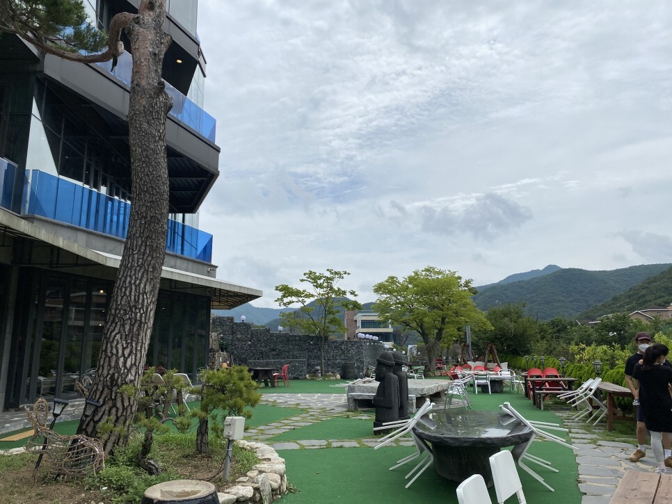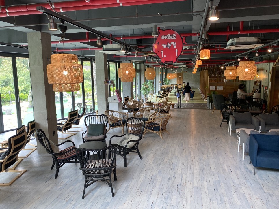 비가 계속 내리고 온도는 높아서 습한 날씨였지만, 바깥으로 한 번 나가봅니다. 야외에도 자리가 많아서 날씨가 좋을 땐 밖에 앉아도 좋을 것 같아요.