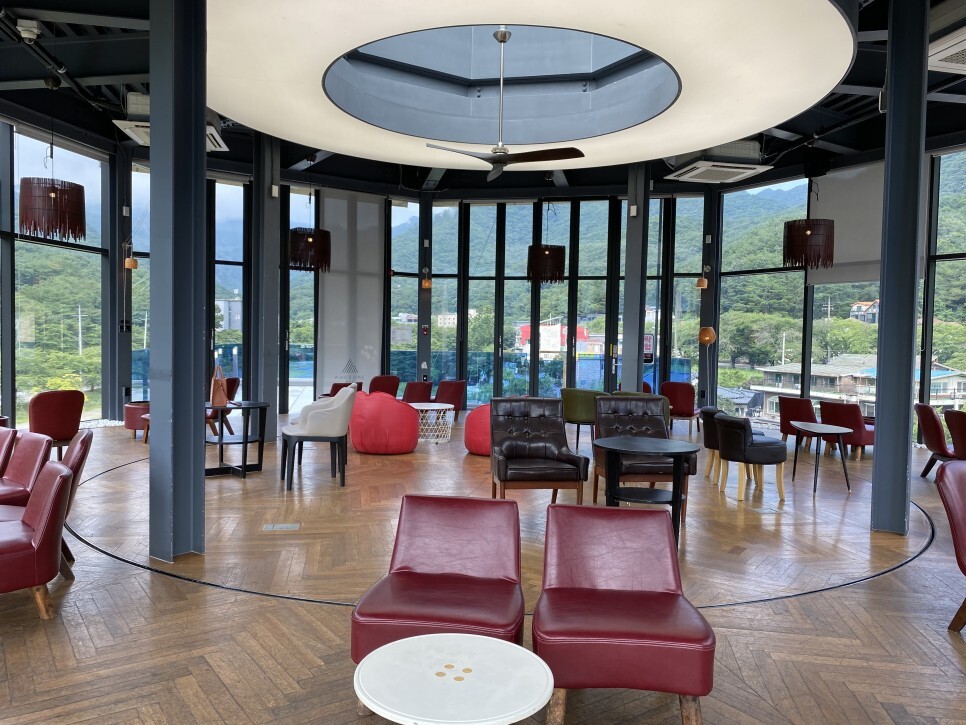 3층으로 올라와보니 원형으로 되어 있고 바닥이 왠지 천천히 회전 하는 것 같아요. 그.. 남산타워 레스토랑처럼 천천히 회전하는걸까요.