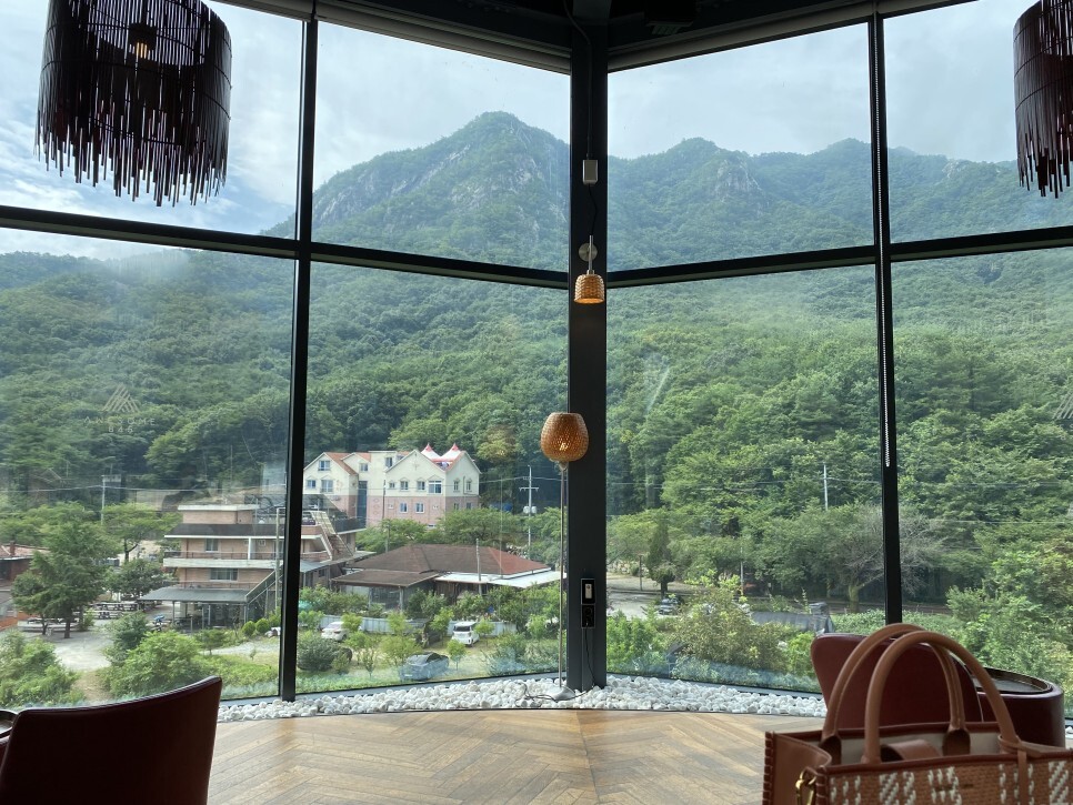 의자에 앉으면 이렇게 계룡산이 한 눈에 보이는데, 계룡산뷰가 기가 막힙니다. 계룡산이 이렇게 아름다운 산이었나요.. 임관식하러 한 번 왔었는데 그 땐 산이라면 질색을 할 때라 관심이 없었나 봅니다.