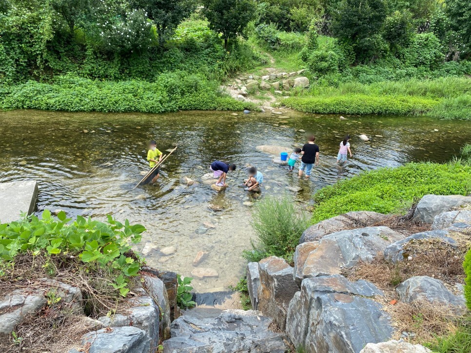 계곡을 내려가보니 아침부터 아이들이 물놀이를 하고 있었어요. 어디서 쪽대를 가지고 와서 물고기를 잡는 아이도 있었구요. 저는 언제 이렇게 계곡에서 놀아봤는지 기억도 잘 안나는 것 같네요..