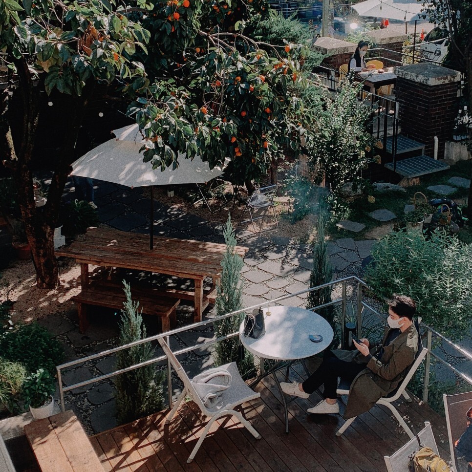 들어가보면 정원이 꾸며져 있고 한쪽엔 화로가 있습니다. 날이 약간 쌀쌀해서 불 가깝게 앉았는데 연기가 너무 많이 날아와서 훈연되는 느낌이었습니다. 가능하면 불은 밖에서만 보고, 커피는 안에서 즐기시길 추천해요.