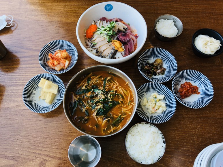 "나 속초가면 물회 먹어볼래. 한 번도 안먹어봤어."
