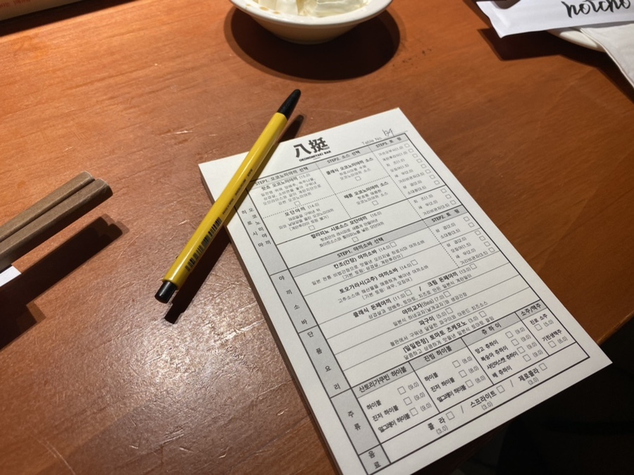 메뉴판에 펜으로 원하는 메뉴를 체크합니다.