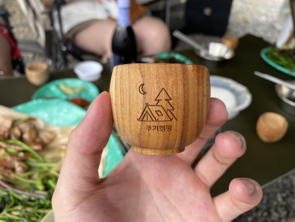쿠기가 커스텀으로 만든 나무잔에 마셨습니다.