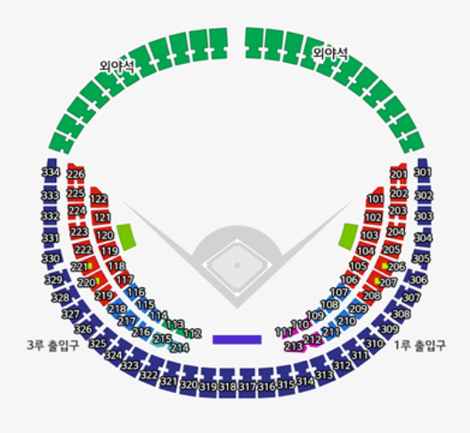 잠실야구장은 위 사진처럼 색깔별로 좌석이 나뉘고