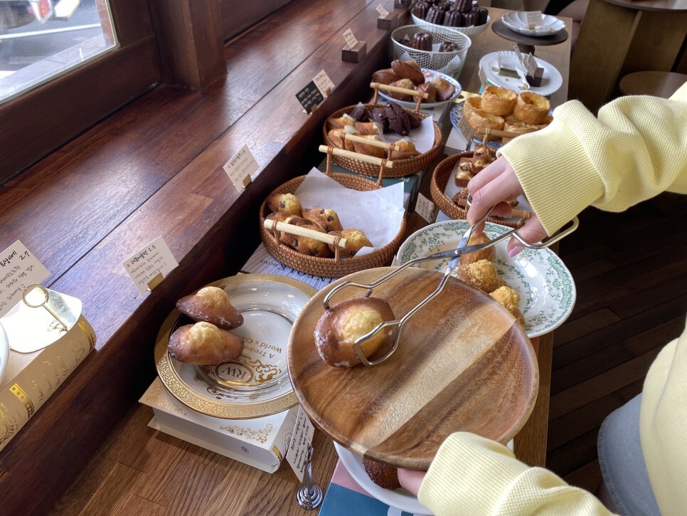 아니나 다를까 주저하지 않고 레몬 마들렌을 집어요.