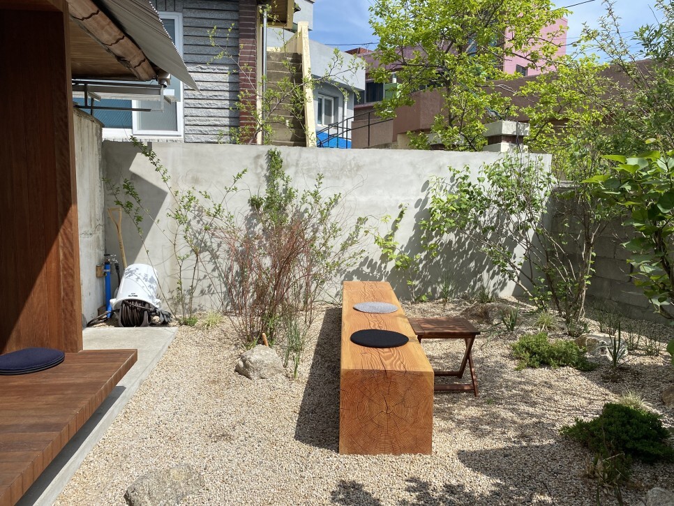 작은 자갈을 깔아 놓았고 좌석도 마련되어 있네요.