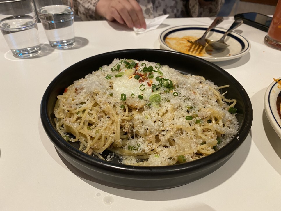 간 돼지고기와 오일 베이스로 만든 파스타에요.